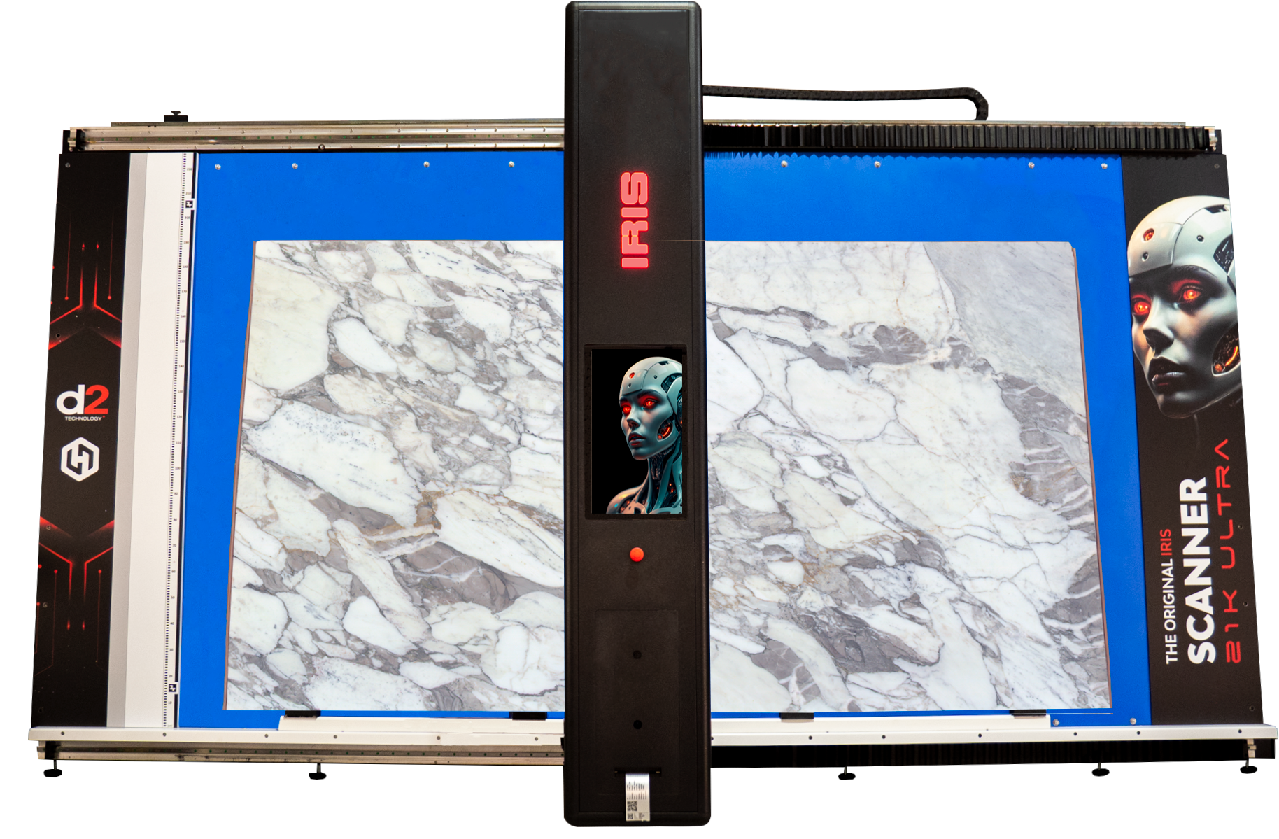 The Iris Slab Scanner is the world’s best selling and most advanced slab scanner. Featuring high-resolution 21K technology, it revolutionizes the stone industry by eliminating shadows, calibrations, and tape measurements for defects. With a compact footprint, it can scan a slab in just 16 seconds.