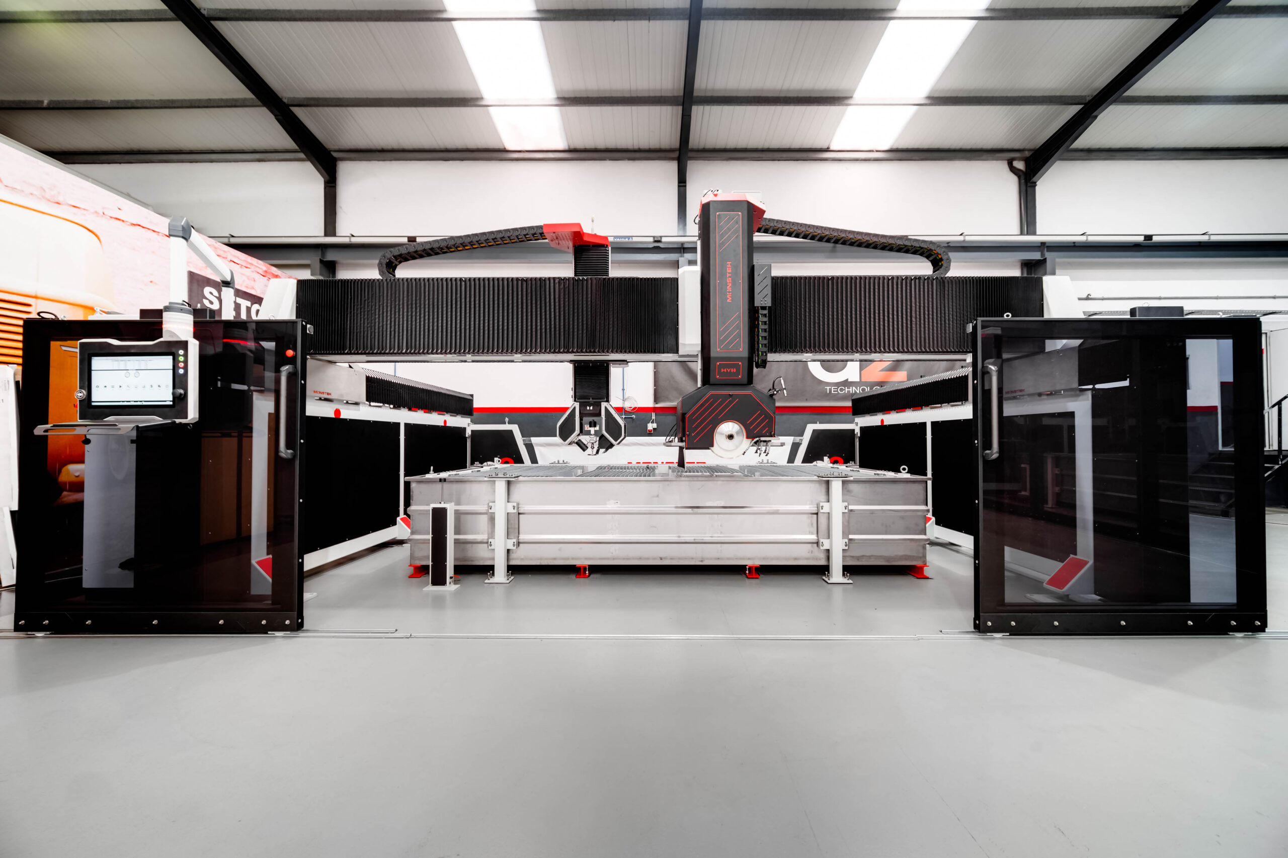 The Monster Hybrid features two fully independent cutting heads, allowing simultaneous or alternate cutting with blade and waterjet technology.